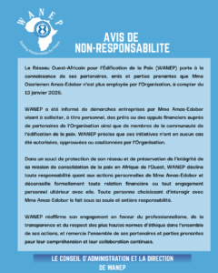The West Africa Network for Peacebuilding (WANEP) hereby informs its valued partners, friends and stakeholders that Ms. Osariemen Amas-Edobor is no longer an employee of the organisation, effective 13th January 2026.